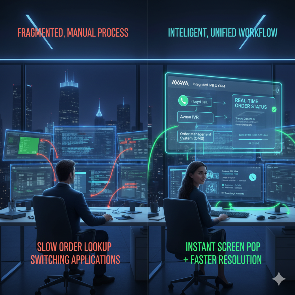 A common challenge for e-commerce companies is the high volume of inbound calls for order status updates. This ties up live agents who could be handling more complex customer service issues. A solution is to integrate their Avaya IVR with their Order Management System (OMS). This enables the IVR to pull real-time order status information and share it with the customer without the need for a live agent.